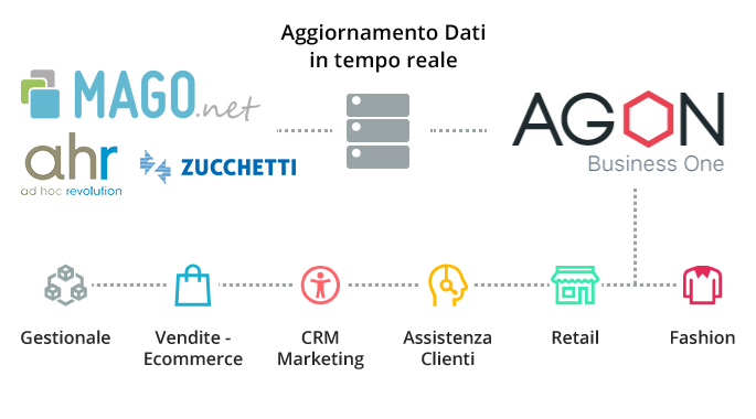 AGON è il Software Web e Mobile nativamente integrato al Gestionale Mago, che ne estende - in poche ore - le potenzialità sul web, tramite un intervento da remoto.